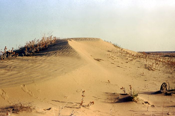 In much of the region away from the riverbed, the sediment is topped with soil, which is good for farming. Today, the dunes south of the river are covered with grass and other vegetation, which keeps the sand from shifting. These dunes are considered inactive—that is, they are no longer moving in response to wind and water.