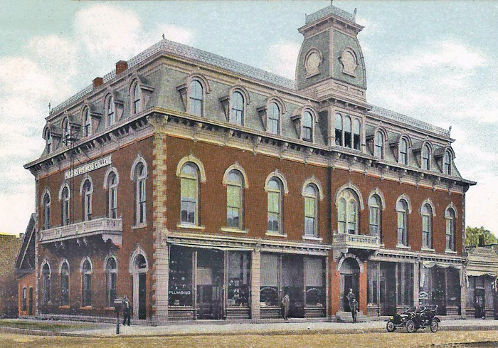 At about the same time, through the enterprise of E.H. Edwards, the city was supplied with an Opera Hall. It was a large two-story brick building, the upper floor fitted up and furnished as a hall, and the lower floor divided into storage rooms.